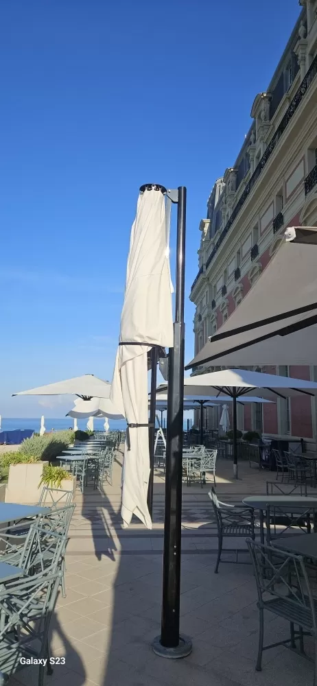 Caballero stores votre spécialiste de l'ombrage à Biarritz a été commissionné par l'Hôtel du Palais pour la dépose de ses parasols pour la saison hivernale.